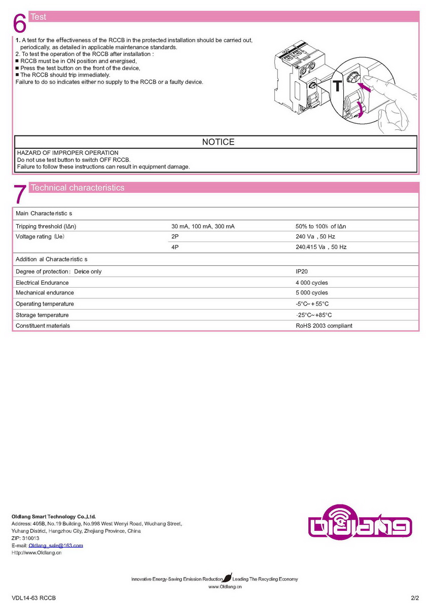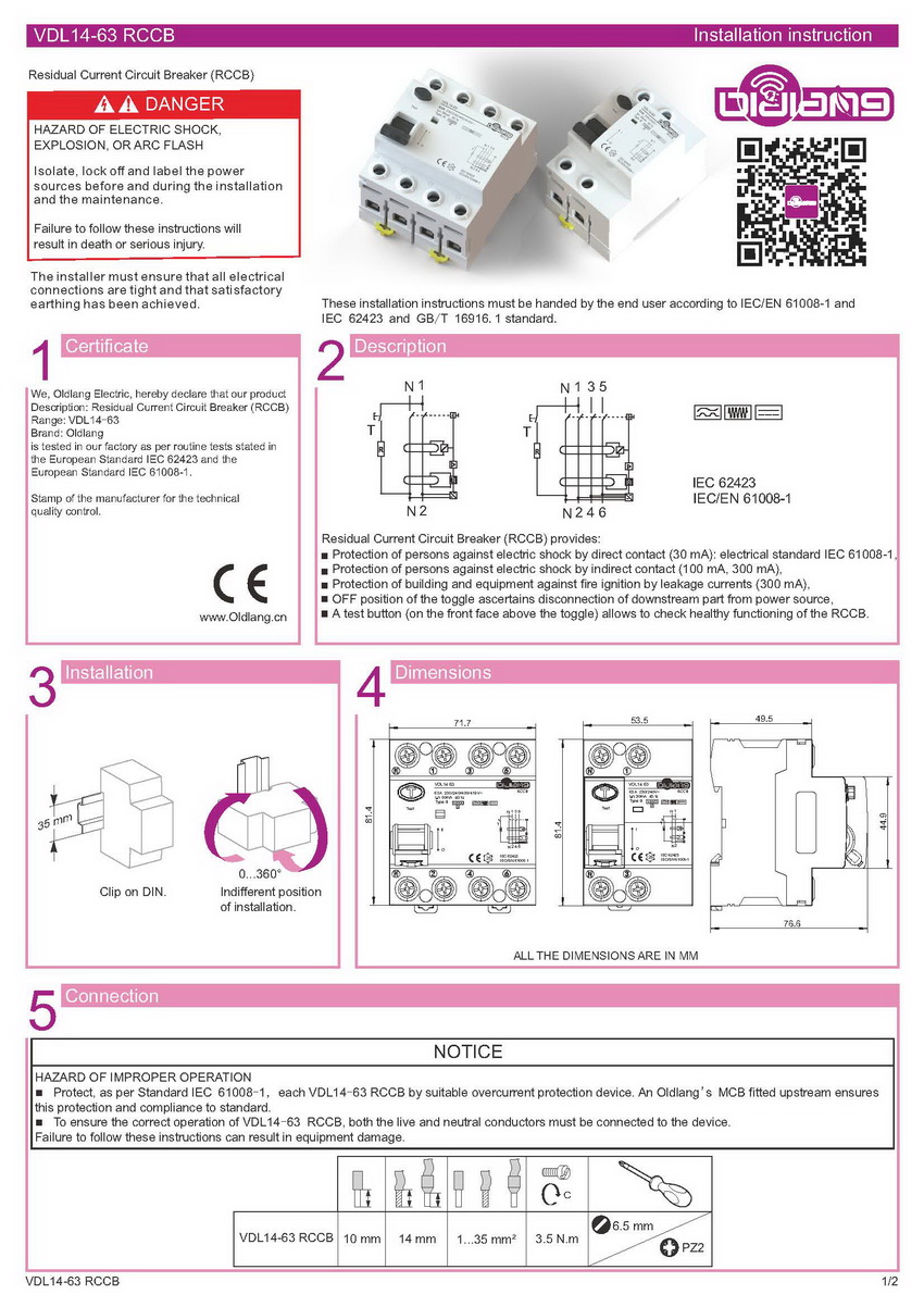 VDL14-63 RCCB Installation instruction EN
