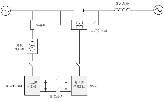 从结构上看,UPFC是将静止同步串联补偿器(static synchronous series compensator, SSSC)作为串联电压源、静止同步补偿器(static synchronous compensator, STATCOM)作为并联电流源集成到一起而形成的潮流控制器,但其功能较SCCC、STATCOM更为强大。
