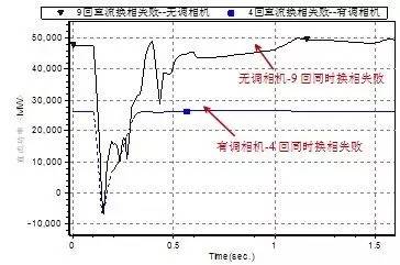 3.调相机调节速度要慢于SVC、STATCOM,调相机从正常无功出力至输出最大强励无功功率的时间约1.2s。