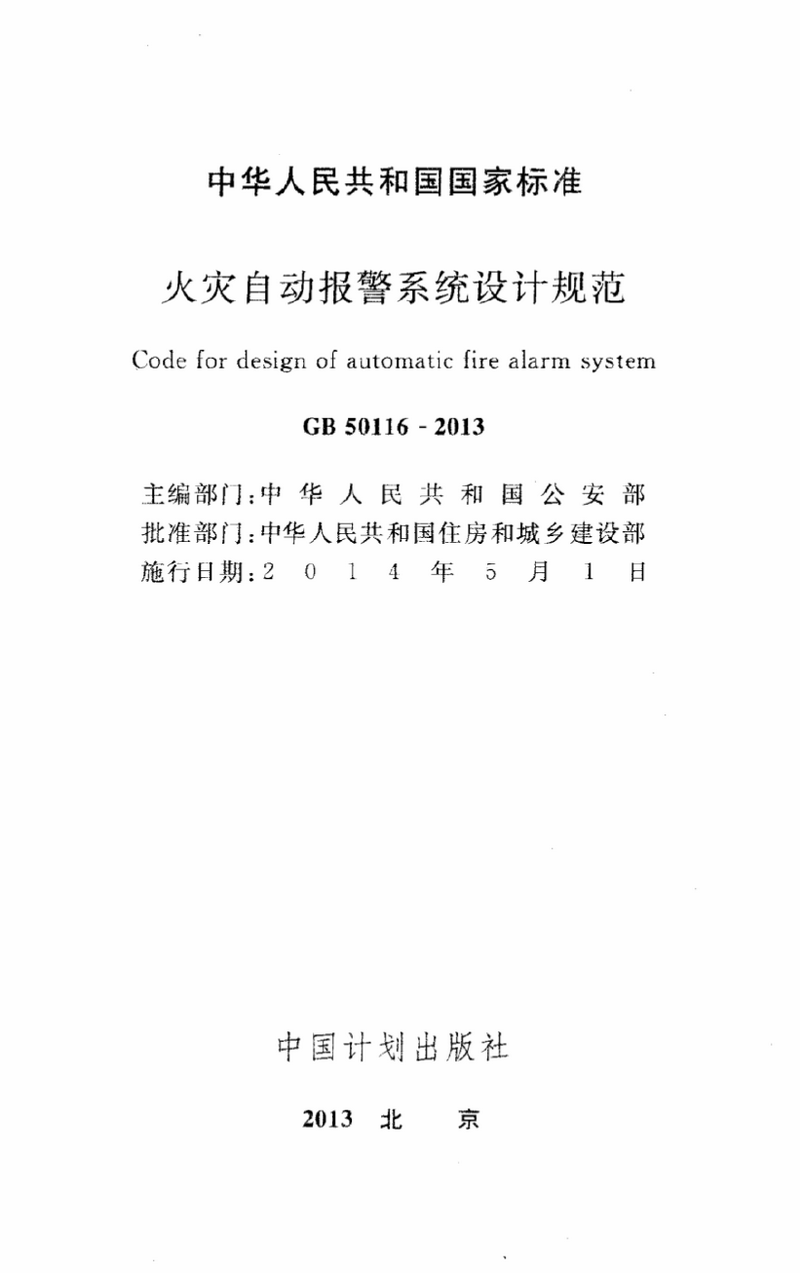 GB50116-2013 Code for design of automatic fire alarm system