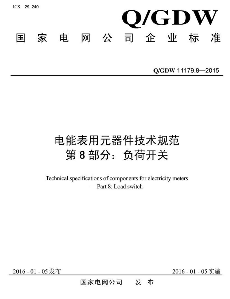 Q/GDW 11179.8-2015 Technial specifications of components for electricity meters-Part8:Load switch