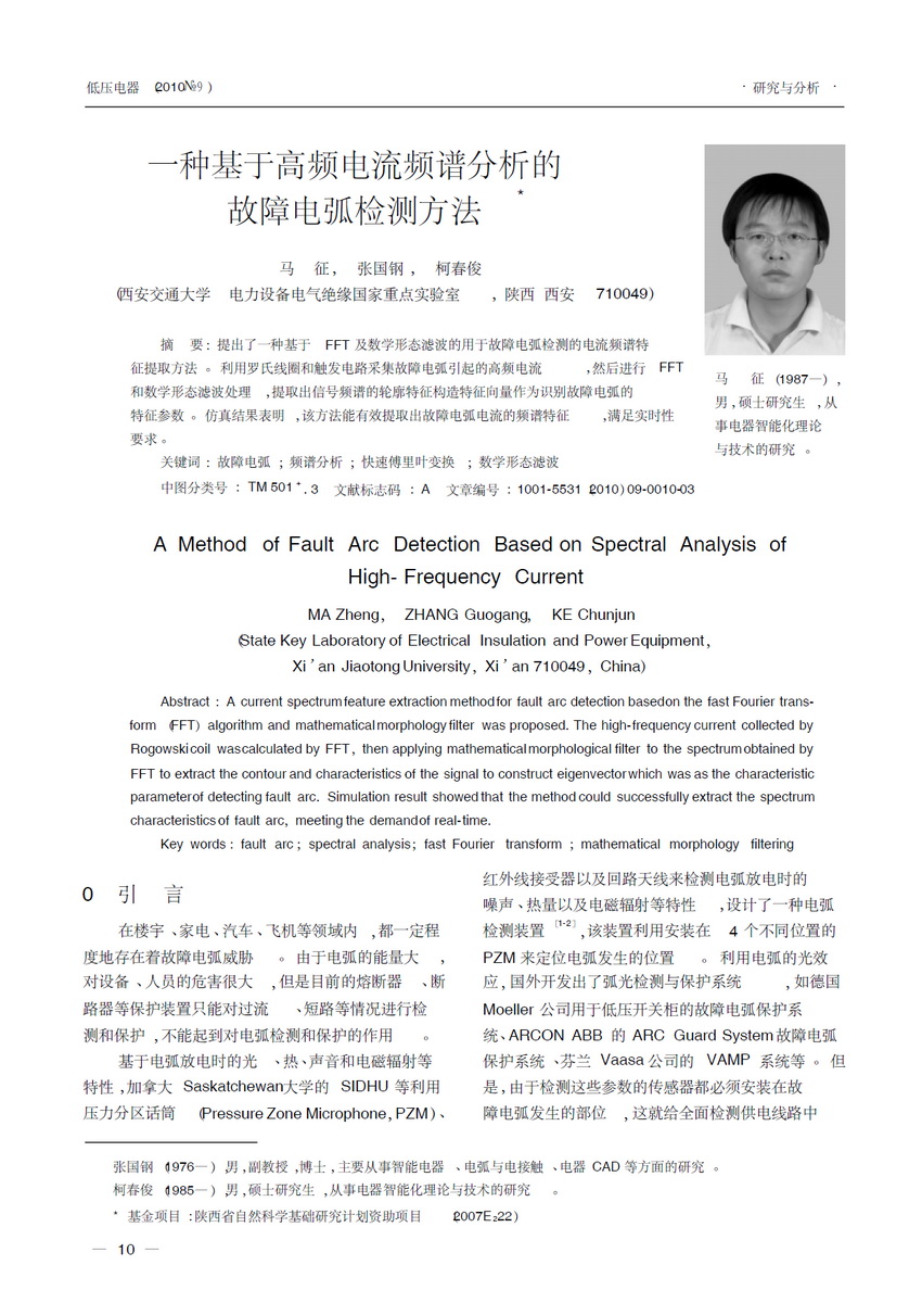A fault arc detection method based on high frequency current spectrum analysis