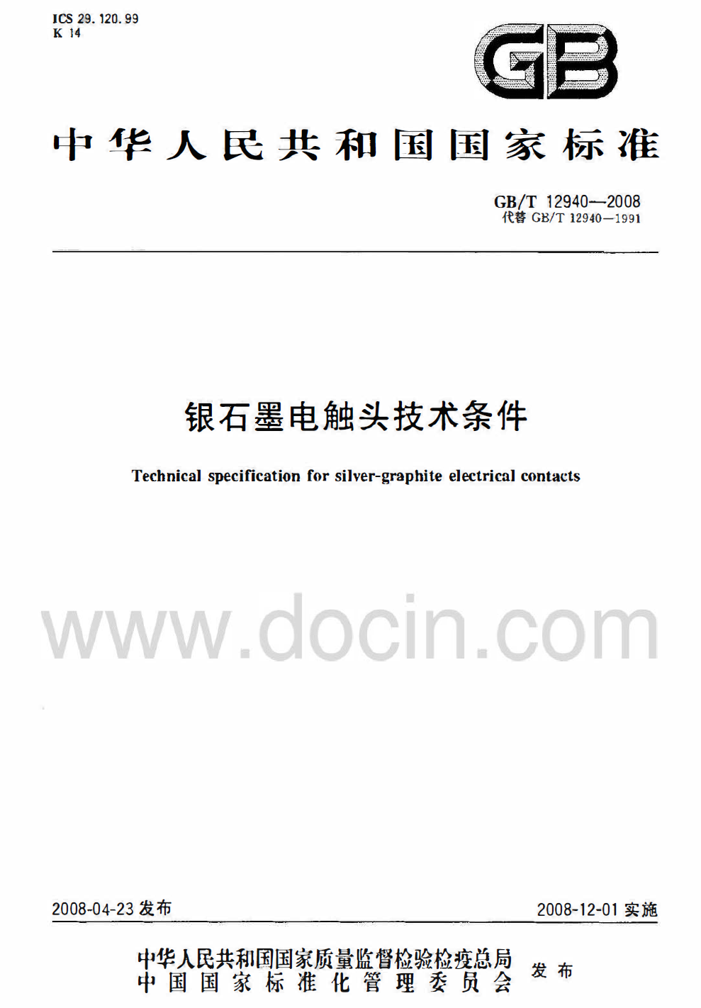 GB/T 12940-2008 Technical specification for silver-graphite electrical contacts
