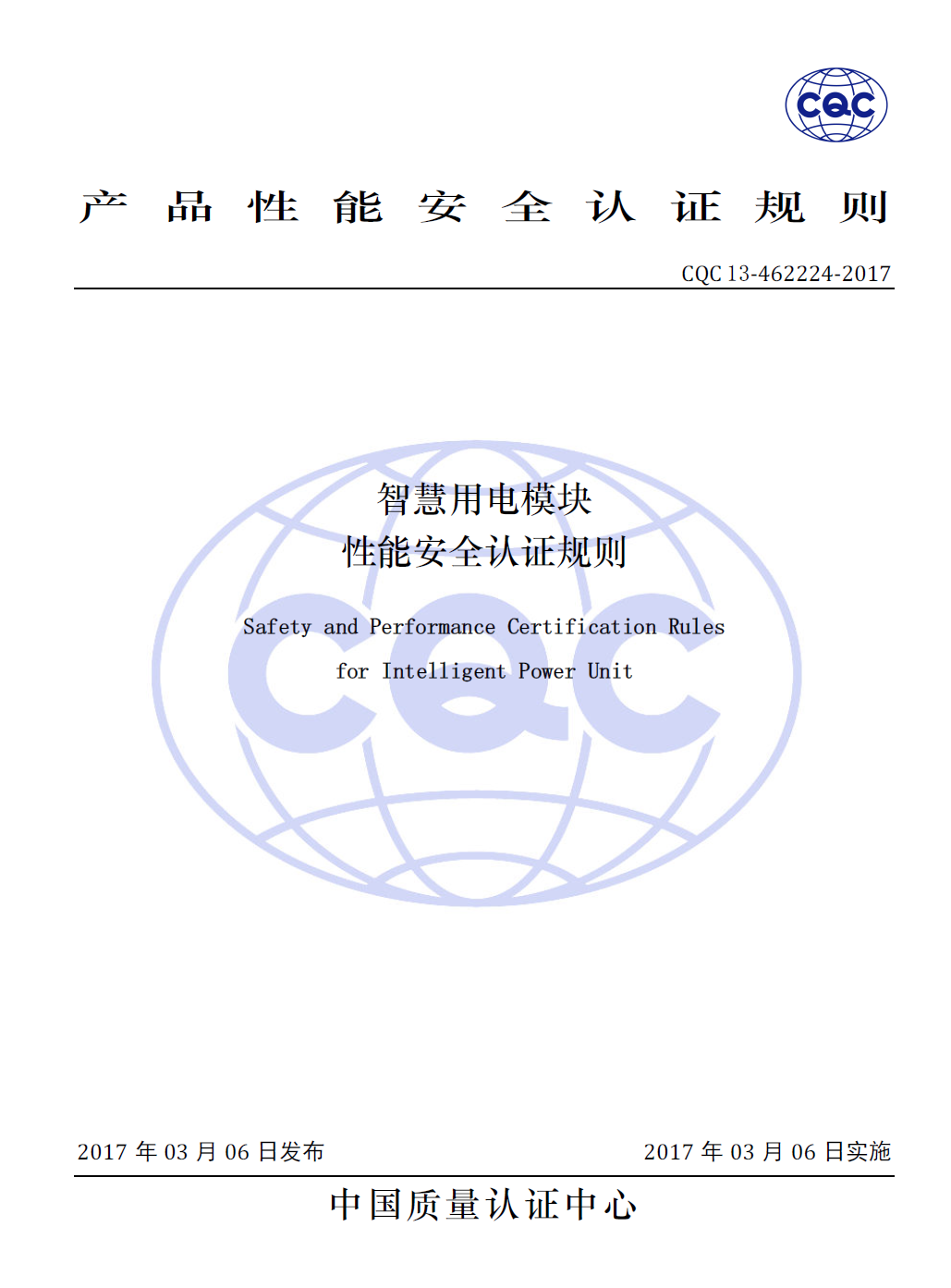 CQC 13-462224-2017 Safety and Performance Certification Rules for Intelligent Power Unit