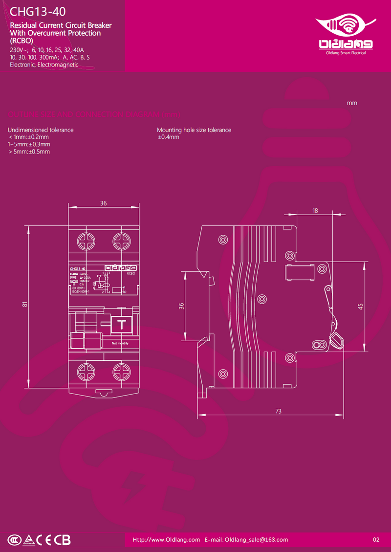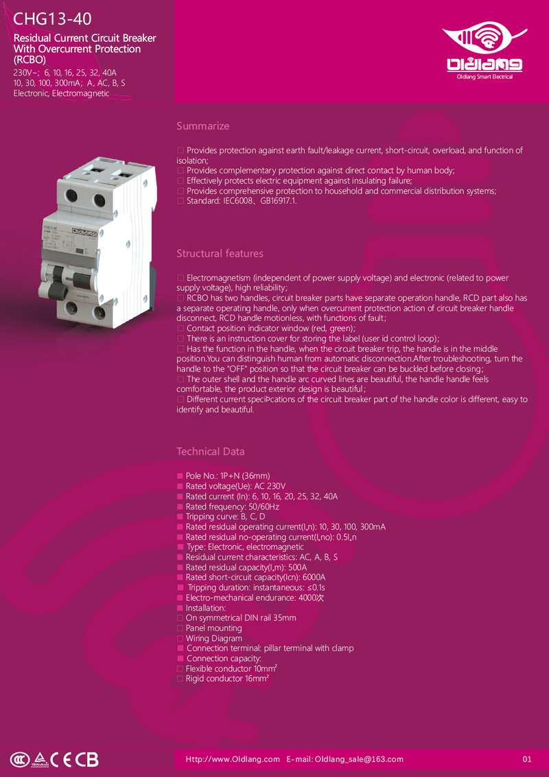 CHG13-40 Residual Current Circuit Breaker with Overcurrent Protection