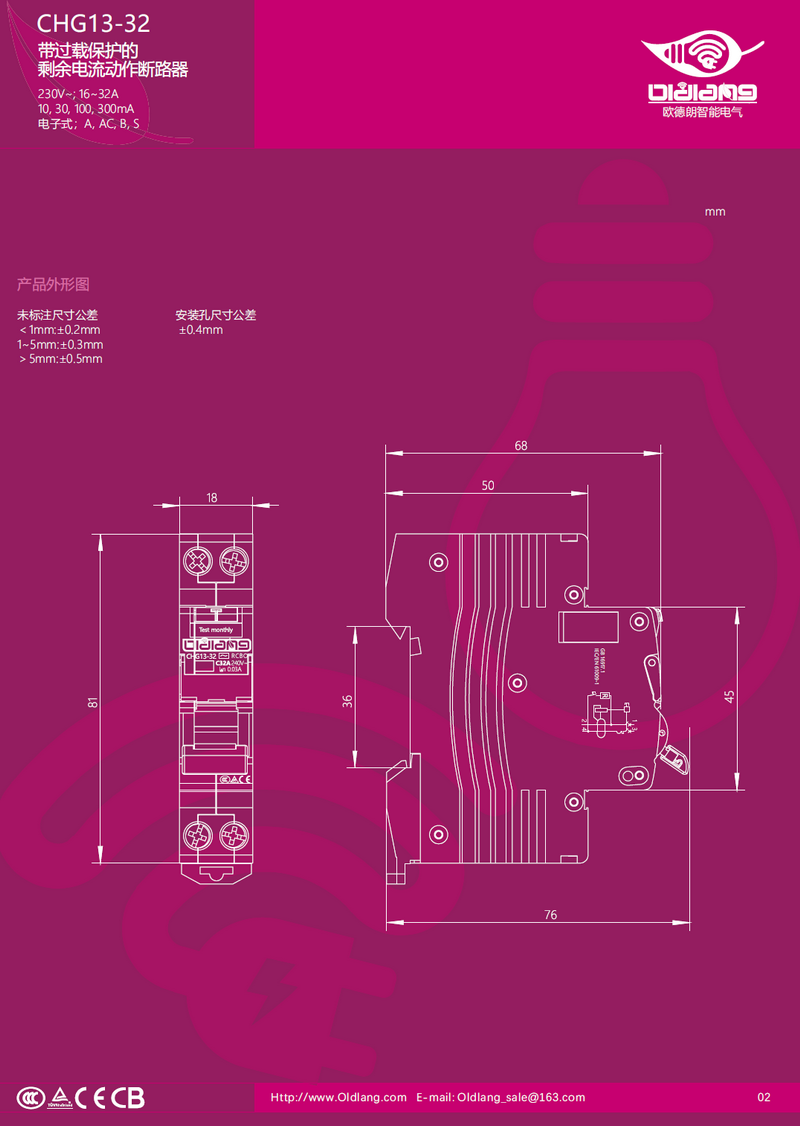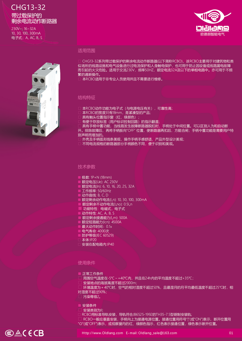 CHG13-32 带过载保护的剩余电流动作断路器