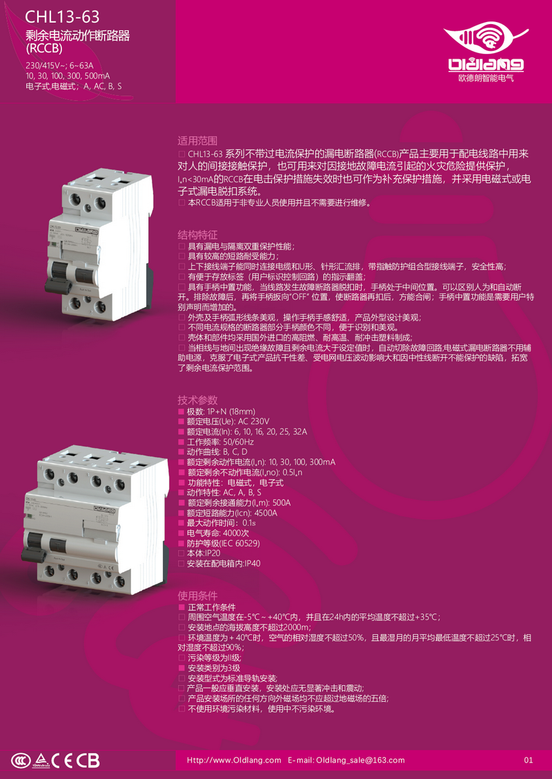 CHL13-63 剩余电流动作断路器