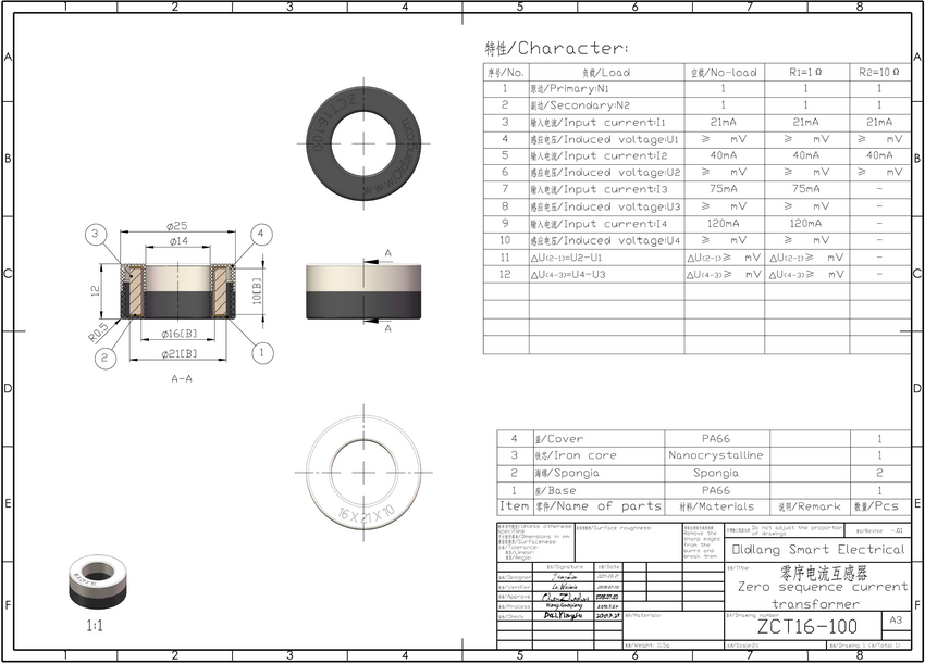 ZCT16-100零序电流互感器